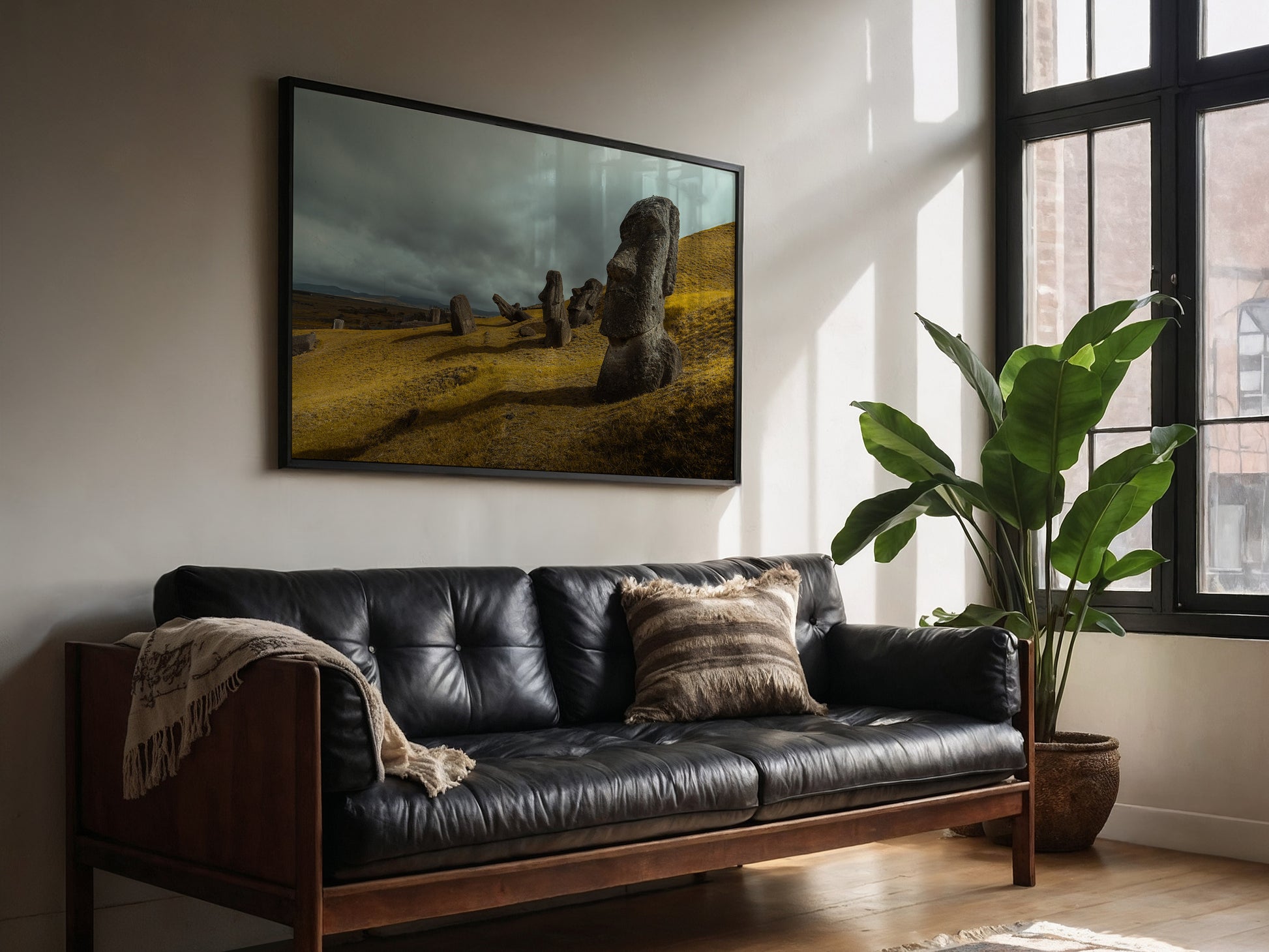 Step into the heart of history with our Timeless Guardians Wall Art, showcasing the iconic Moai statues resting in their birthplace, the quarry of Rapa Nui (Easter Island). This breathtaking artwork captures the awe-inspiring sight of these unfinished yet majestic sculptures, steeped in mystery and cultural significance. Perfect for those who dream of visiting this remote island or hold fond memories of exploring its ancient wonders, this print brings the timeless spirit of Rapa Nui into your home.